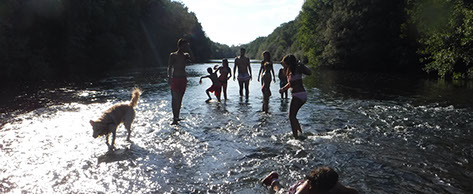 A medio día como descanso de la práctica matinal nos relajaremos en la piscina jugando y refescándonos en el agua. El verano es diversión y el agua no puede faltar.